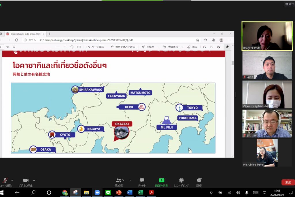 愛知県の岡崎市様と一緒に、タイ現地旅行会社とのオンライン商談を実施しました。