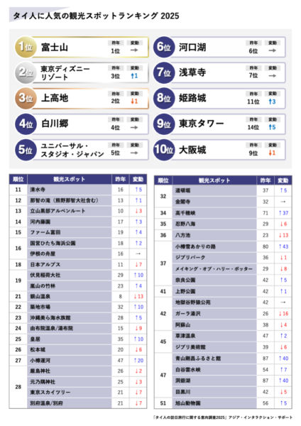 1位は5年連続で「富士山」! 訪日タイ人の人気観光地ランキング2022 を発表