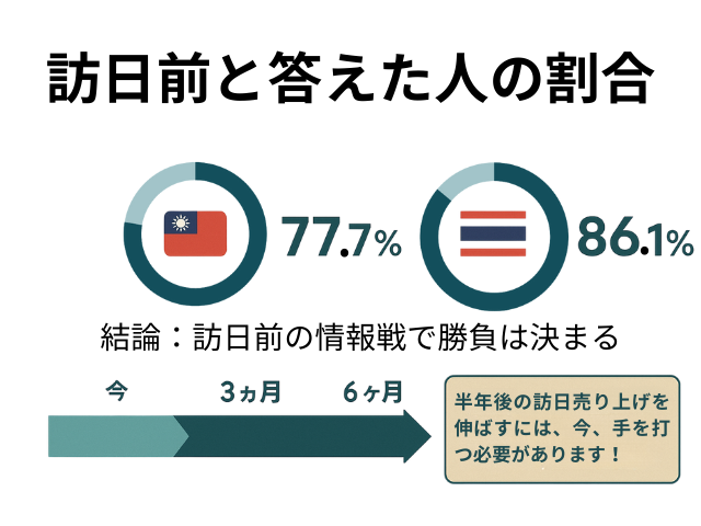 訪日前と答えた人が、台湾:77.7%、タイ:86.1%