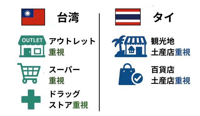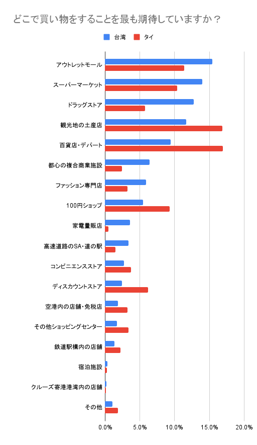 台湾とタイでは、買い物しようとしている場所に違いがありました。