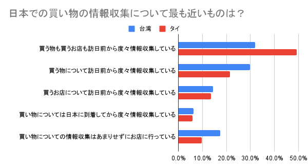 買う物も買うお店も訪日前から度々情報収集している | 32.0% | 49.3% |