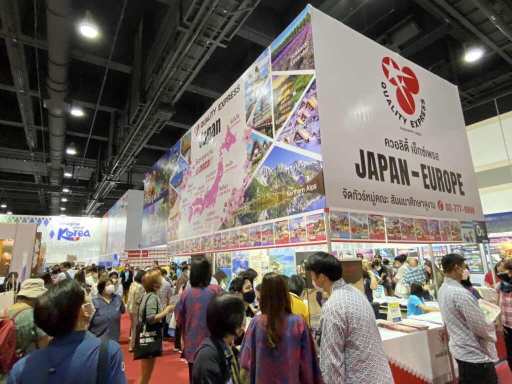 タイ現地旅行会社も多く出展をし、来場者を最もひきつけていました。日本は相変わらず各社の主力商品で、ゴールデンルートをはじめとする定番ツアーやお得なツアーの売れ行きがよく、完売した商品もいくつかありました。